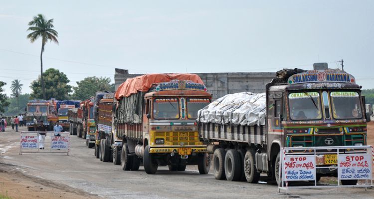 Traffic came to a grinding halt on NH5 with lorries queing up for several kilometers due to road blockade by Telangana agitators at Nallabandlagudem village of Kodad mandal in Nalgonda district on Monday.