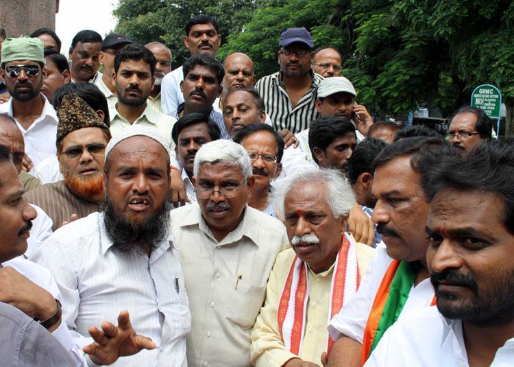 Telangana activists who started Padyatra from Zaheerabad on September 16 reached Hyderabad by walking over 100 kms on Tuesday. They were received at Gun Park by TP-JAC chairman Kodandaram, BJP leader Bandaru Dattatreyya and others - INN Photos