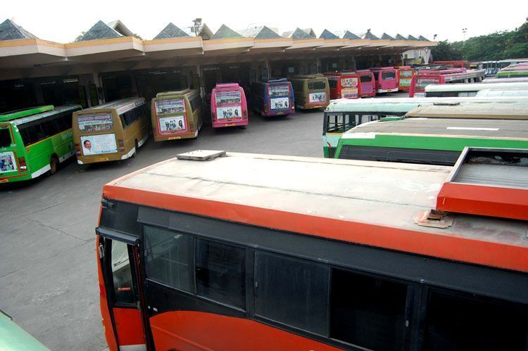 The Mahatma Gandhi Bus Station in Imliban wore a deserted look on the second day of RTC employees strike on Tuesday - INN Photos