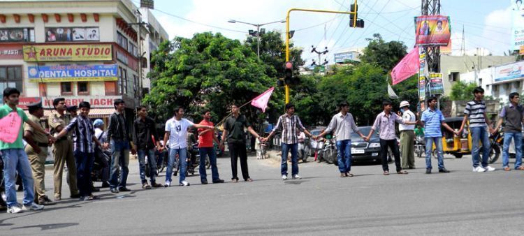 TRSV members stating Rasta Roko at SR Nagar on Tuesday in protest against lathicharge on Osmania University And Nizam College students - INN Photos