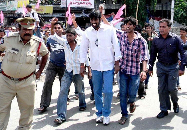 TRSV members stating Rasta Roko at SR Nagar on Tuesday in protest against lathicharge on Osmania University And Nizam College students - INN Photos