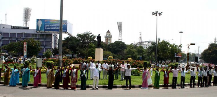 Telangana Jagruti President Kavita along with Telangana Lecturers' Sangham members forms 'Human Chain' near assembly on Tuesday demanding statehood for Telangana region. Later, they were arrested by the police - INN Photos