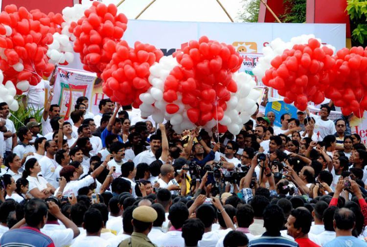 Tollywood Star Allu Arjun, Police Commissioner AKKhan and Dr. Guruva Reddy releasing balloons before participating in the walk from Jalvihar to I-Max on the occasion of World Heart Day organized by Sun Shine Hospital here on Sunday - INN Photos