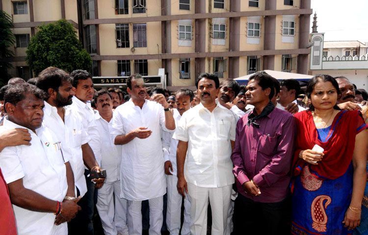Telangana Secretariat Employees JAC blind-folded protest at the State Secretariat in front of Samata block where CM's office is located on Monday along with Minister Komatireddy Venkata Reddy, Jupally Krishna Rao, TRS leaders Etela Rajender, K Tarakarama Rao, MPs Madhu Yashki, Rajaiah, TNGO leader Swamy Gowd - INN Photos