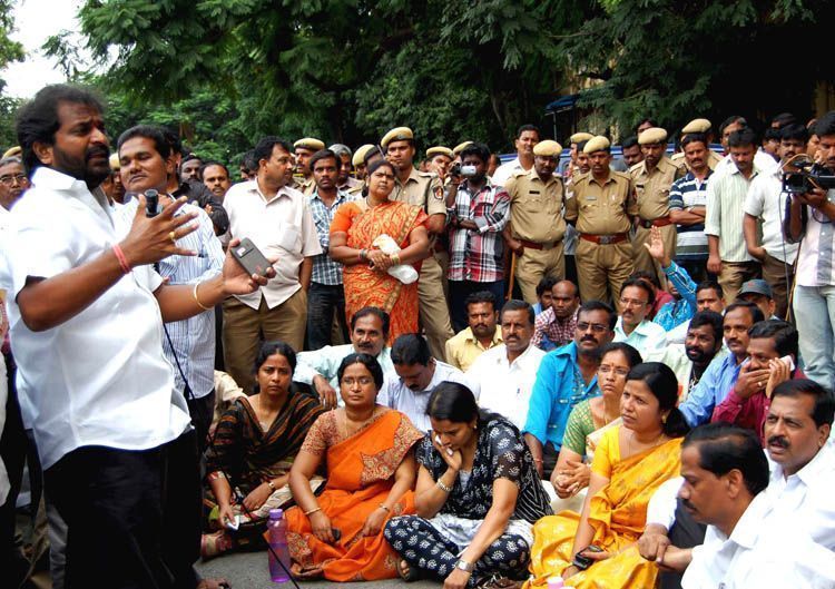 Telangana employees in the state Secretariat on Wednesday holding protest against the arrest of three drivers who refused to join duties. The employees have given a call for 'Secretariat Bandh' on Thursday.