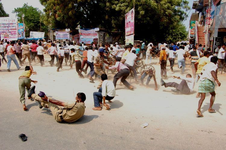 Telangana activists attacked private buses coming from Andhra towns to Hyderabad on NH 9 at Nakrekal mandal head quarters on Monday morning. Nearly 20 buses were damaged and a number of buses with passengers were stranded on the highway for several hours. Police used lathicharge to disperse Telangana activists when they pelted stones at police, injuring a few policemen A few T activists were taken into custody by police.