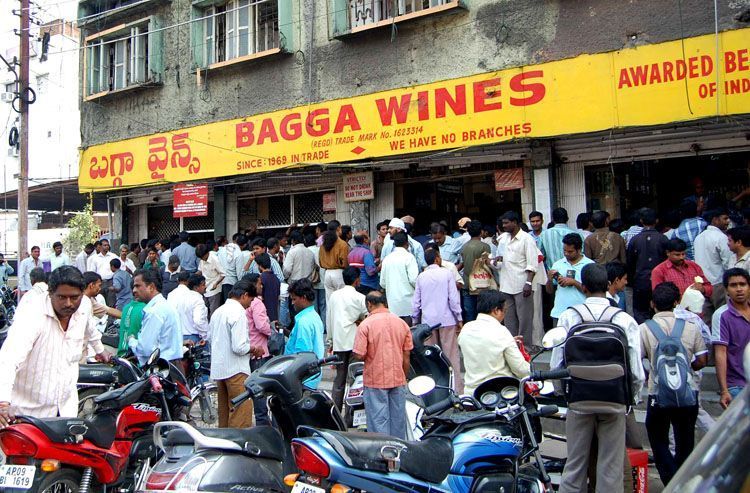 Rush at wine shops on Wednesday due to both - Dasara festival and excise employees joining the general strike for separate Telangana - INN Photos