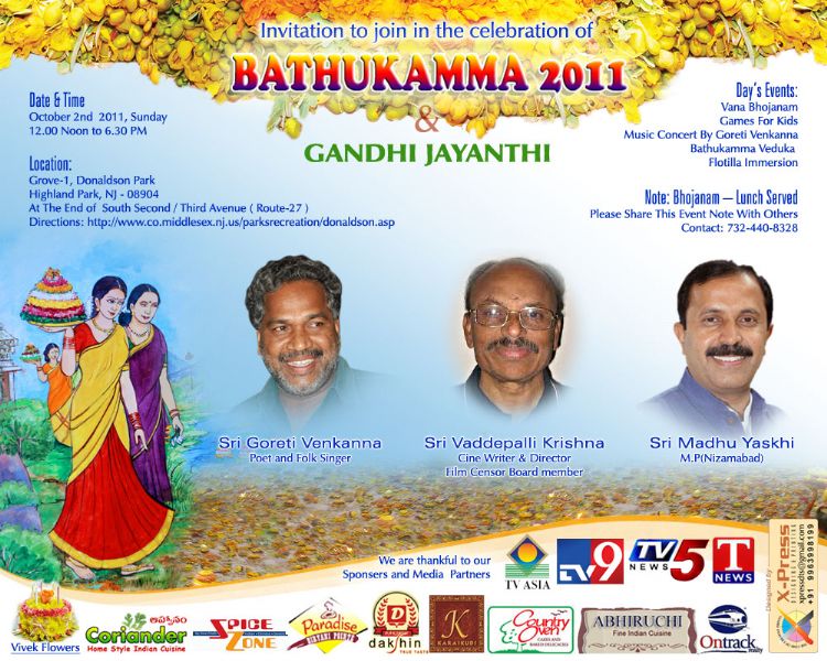 New Jersey Telangana Association celebrated Bathukamma festival and Gandhi Jayanthi event on Oct 2nd at Donaldson Park, in Highland Park, New Jersey.