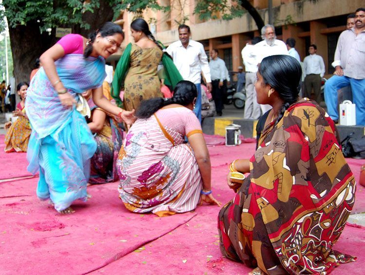 Advocates and employees of City Civil Court at Purani Haveli playing Kabadi and Koko in the court premises on Wednesday as part of Sakala Janula Samme demanding formation of Telangana - INN Photos