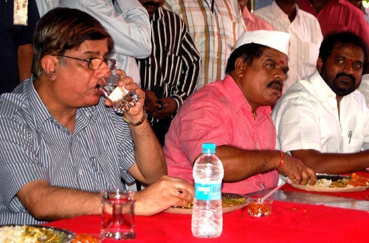 Luncheon diplomacy: Secretariat Telangana employees JAC hosts a lunch for Seemandhra and Telangana employees here on Friday. Although the Employees JAC leaders boycotted the talks on Friday with the government, but they shared lunch with Chief secretatry Pankaj Dwivedi and other senior officials. JAC leaders Swamy Goud and Srinivas Goud are also seen - INN Photos