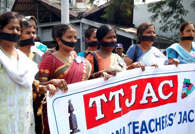 Telangana Teachers JAC activists took out a silent rally from ODA office Basheer bagh to Gun Park here on Monday demanding separate Telangana - INN Photos