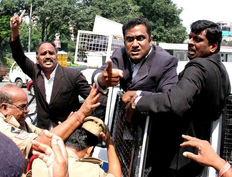 Telangana advocates being arrested by the police for holding protest at Assembly building here on Tuesday - INN Photos