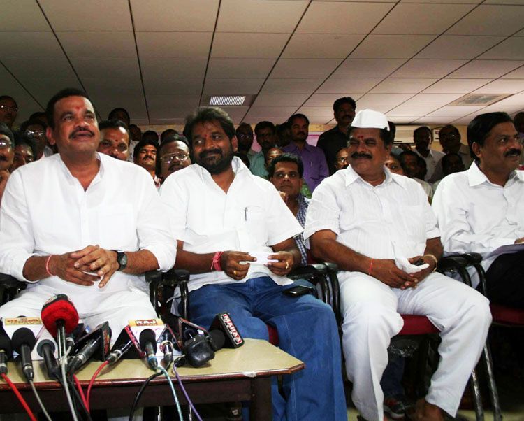 Former minister Komatireddy Venkat Reddy addressing a press conference along with the TNGOs president Swamy Goud and other leaders at TNGOs office here on Tuesday - INN Photos