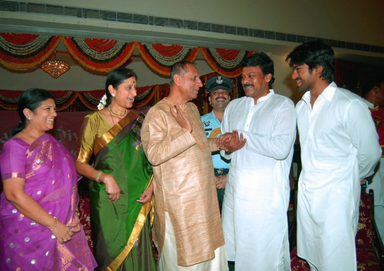 Chiranjeevi along with is wife Surekha, son Ram Charan Teja greeting Governer ESL Narasimhan and his wife Vimala Narasimhan at Raj Bhavan on the eve of Deepavali.