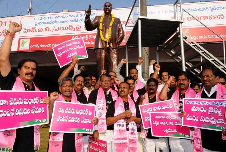 TRS MLAs, clad in black T-shirts, takes out rally demanding withdrawal of cases foiled on Telangana activists from Ambedkar's statue at Tank Bund to Gun Park here on Thursday before attending Assembly session - INN Photos