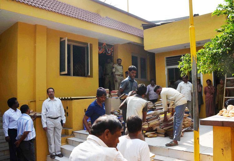 NTR's son Ramakrishna taking possession of NTR's house at Rd No 13, Banjara Hills on Friday with the help of court orders and local police, where Lakshmi Parvati is living since NTR's death. - INN Photos