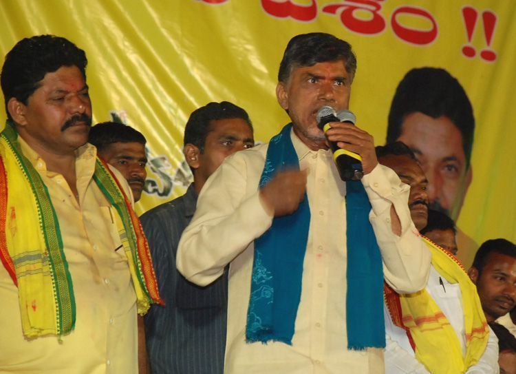 Telugudesam party president N.Chandrababu Naidu as part of his Rythuporubata visited several places in Adilabad district on Wednesday. He is seen addressing a huge gathering at the end of the day.