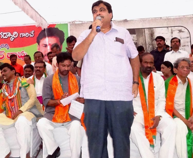 BJP national president Nitin Gadkari addressing a gathering at Indira Park here on Friday on conclusion of three-day hunger fast on weavers' issue - INN Photos