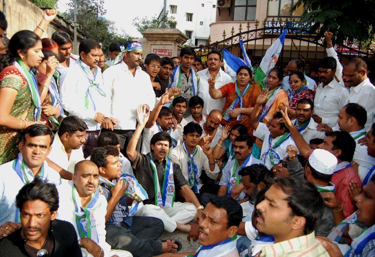 YSR Congress party activists protest against the liquor mafia before the Excise Office at Abkari Bhavan, Nampally here on Tuesday. Several activists were later taken into custody by the police - INN Photos