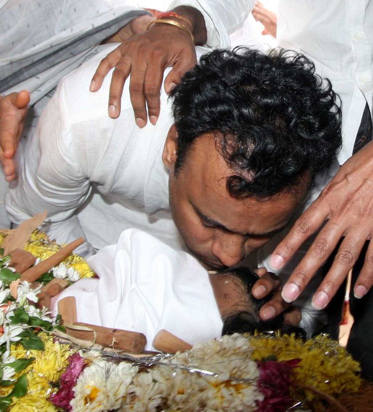 Komatireddy Venkat Reddy, who was in a state of shock with tragic demise of his son Prateek Reddy in a road accident, weeping inconsolably before performing last rites to his dear son on Wednesday in Hyderabad.