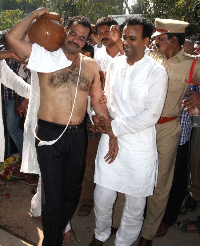 Komatireddy Venkat Reddy, who was in a state of shock with tragic demise of his son Prateek Reddy in a road accident, weeping inconsolably before performing last rites to his dear son on Wednesday in Hyderabad.