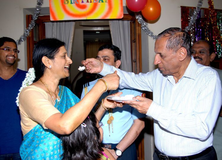 Lady Governor Vimala Narasimhan, wife of Governor E. S. L. Narasimhan, celebrates her 60th birthday at the Raj Bhavan in Hyderabad on Friday along with her family members.