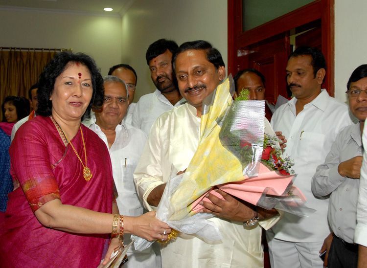 Minister for Major Industries Dr.J.Geeta Reddy greeting Chief Minister N.Kiran Kumar Reddy at his camp office on the occasion of New Year Day on Sunday.