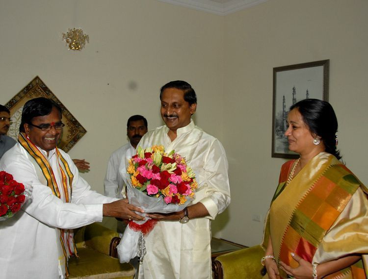 Minister for IT Ponnala Lakshmaiah greeting Chief Minister N.Kiran Kumar Reddy and his wife at camp office on the occasion of New Year Day on Sunday.