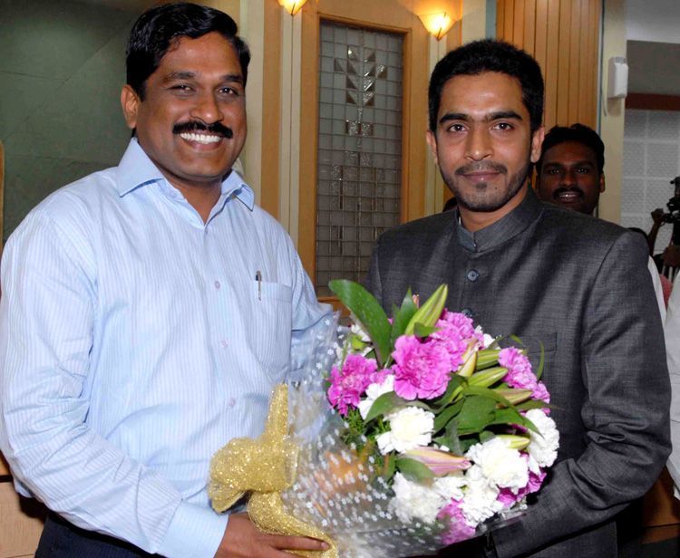 Newly elected Mayor of GHMC Mohammad Majid Hussain being congratulated by GHMC Commissioner MT Krishna Babu after his election at GHMC's Council Hall here on Tuesday - INN Photos