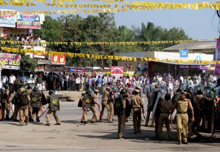 TRS activists in Yadagrigutta tried to pelt stones at Naidu's convoy and in another incident at Vangapally railway crossing, the TRS and TDP workers clash with each other. Police resorted to caning to disperse the mob.