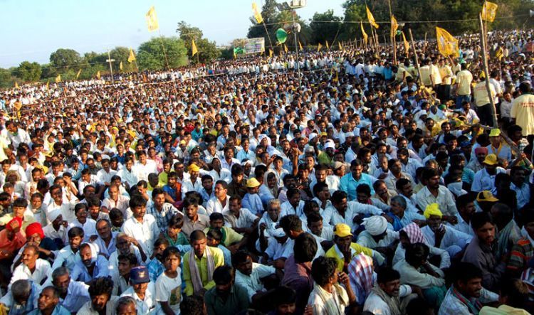 TDP president N.Chandrababu Naidu addressing a public meeting at Palakurti in Warangal district on Friday.