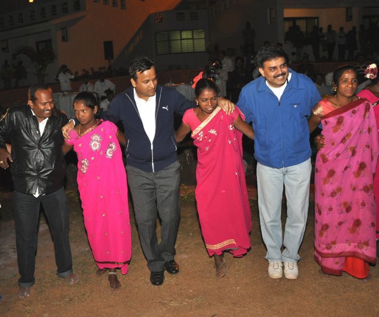 Speaker Nadendla Manohar along with MLA's matching a step with tribal women in Dhimsa dance at Araku Valley in Visakhapatnam agency on Monday.