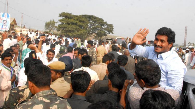 YSR Congress party president YS Jaganmohan Reddy greeting his followers and well wishers before reaching the venue of Rythu Deeksha in Armoor of Nizamabad district.