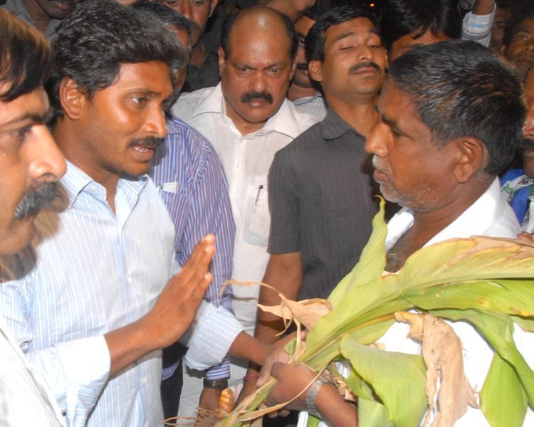 YSR Congress party president YS Jaganmohan Reddy on Wednesday interacting with the farmers who lost their crops on the second day of his Rythu Deeksha at Armoor in Nizamabad district.