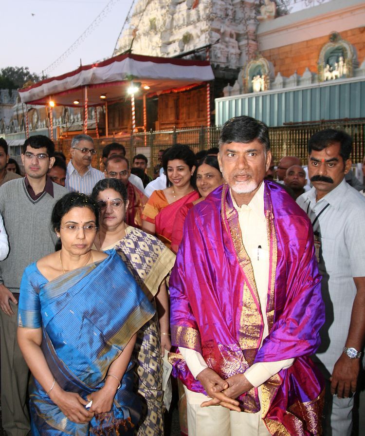 TDP president N.Chandrababu Naidu along with his wife Bhuvaneswari visited Tirumala and had a darshan of Lord Sri Venkateswara on Friday.