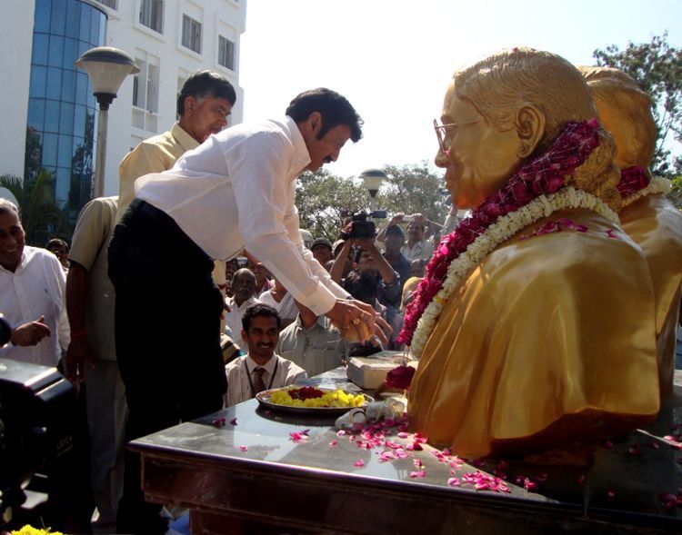 TDP president Nara Chandra Babu Naidu along with Nandamuri Bala Krishna paying floral tributes to NT Rama Rao on his 16th death anniversary at Basavatarakam Indo American Cancer Hospital in Banjara Hills on Wednesday.