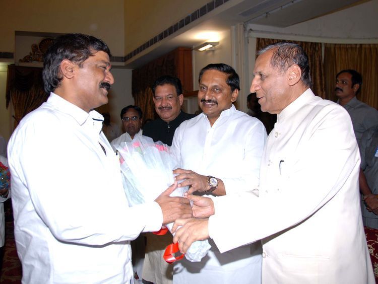Governor ESL Narasimhan congratulating Ganta after he completes swearing in as minister in Raj Bhavan on Thursday.