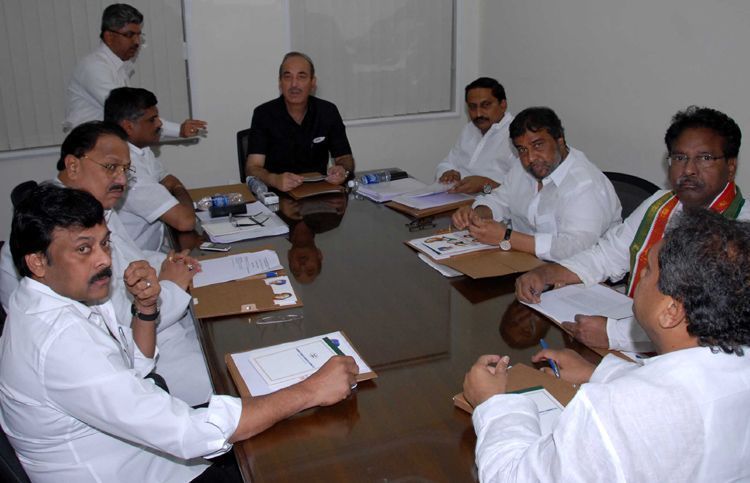 Union Health minister Ghulam Nabi Azad, Chief Minister N.Kiran Kumar Reddy. PCC president Botsa Satyanarayana, K.Chiranjeevi, D.Srinivas and others seen at co-ordination committee meeting in Gandhi Bhavan on Saturday.