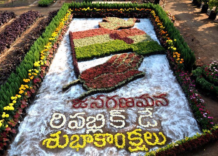 A nursery in Kadiam near Rajhamundry made national flag with different flower plants on the eve of Republic Day.