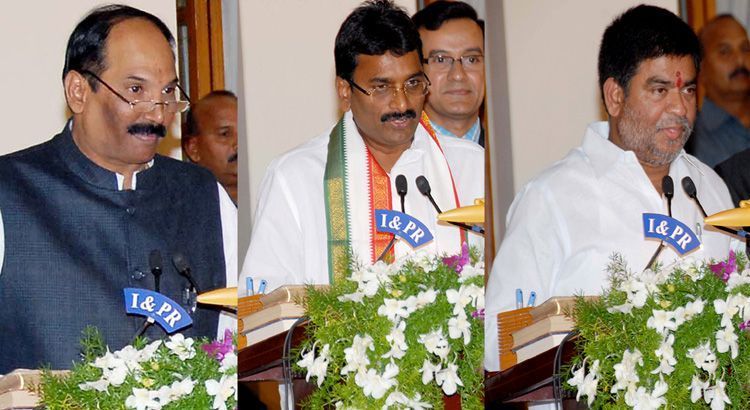 New ministers - Uttam Kumar Reddy, Kondru Murli and Prasad Kumar taking oath of office and secrecy at Raj Bhavan here on Monday - INN Photos