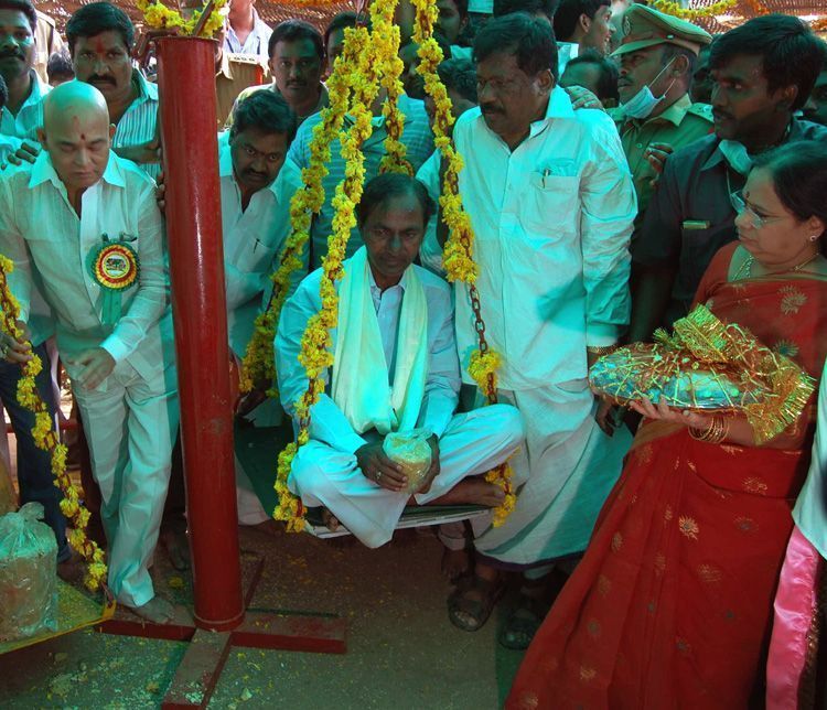 TRS president K Chandrasekhar Rao offered 48 kg of jaggery along with turmeric and vermilion and worshipped the deities of Sammakka and Saralakka at the gaddelu along with his wife in Medaram on Thursday.