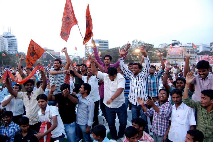 Thousands attend the concluding event of BJP's Telangana Poru Yatra at Nizam College Grounds here on Saturday - INN Photos