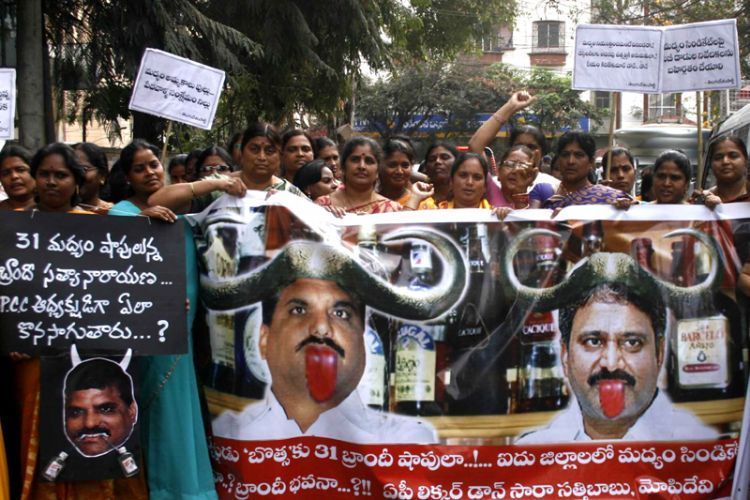 TDP Mahila workers stages dharna in front of PCC president Botsa Satyanarayana's residence at Banjara Hills here on Thursday against his involvement in liquor scam- INN Photos