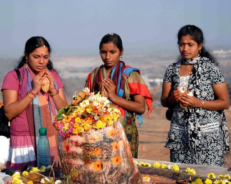 Devotees perform pooja on the occasion of Maha Sivaratri at Kesargutta here on Monday - INN Photos.