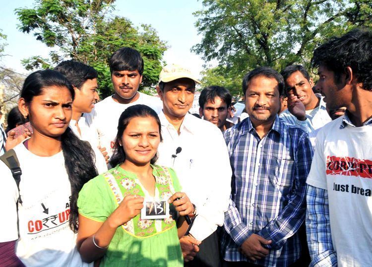 Lok Satta president Dr Jaya Prakash Narayan, noted film director RP Patnaik participates in a youth rally from St Anns College to Wesley PG College here on Wednesday demanding a strong Lok Ayukta - INN Photos