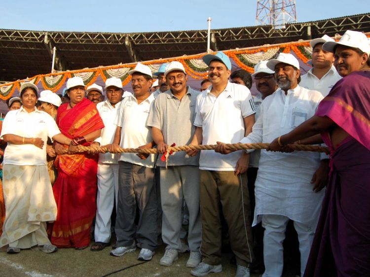 Chief Minister N Kiran Kumar Reddy inaugurates Legislators Sports Meet at LB Stadium here on Monday. Speaker N Manohar, MLAs and MLCs are also seen - INN Photos