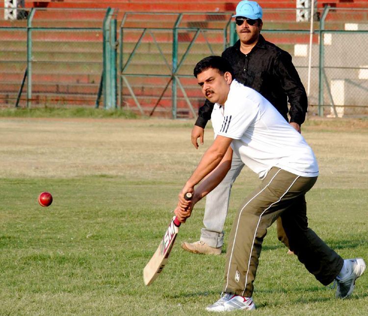 Speaker Nadendla Manohar testing his batting prowess on the eve of Legislators Sports Meet began at LB Stadium here on Monday.