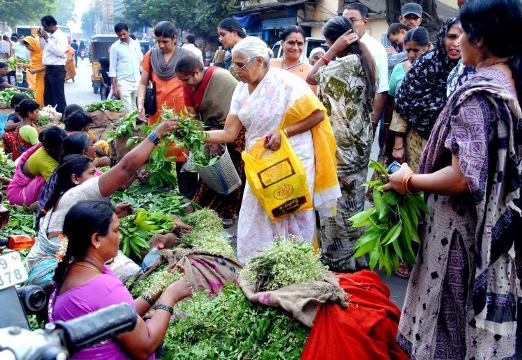 Women are busy shopping for the Ugadi festival at Sultan Bazar here on Thursday - INN Photos
