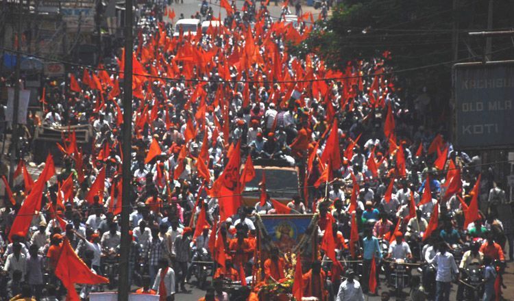 Thousands participate in Shobha Yatra rally from Gowliguda to Tadban on the occasion of Hanuman Jayanthi here on Friday - INN Photos