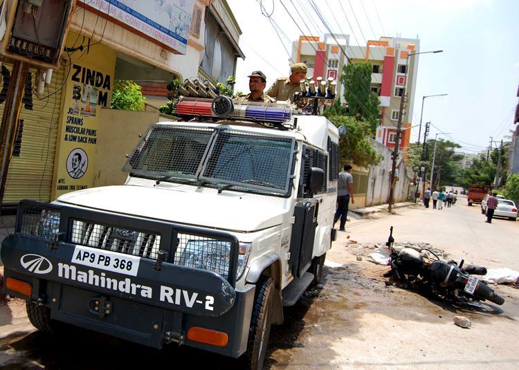 Old City tense: Communal roits erupted in some parts of Old City of Hyderabad on Sunday. Passersby suffer injuries after being hit by miscreants in the Madannapet and Saidabad on Sunday. Vehicles were damaged and set ablaze by the miscreants - INN Photos